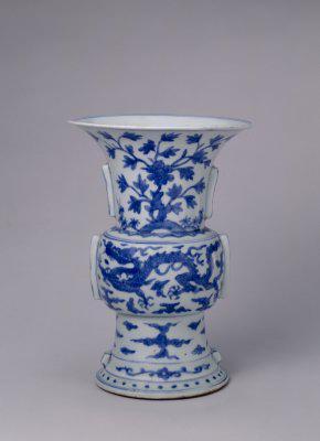 故宮藏明萬歷青花龍鳳紋出戟花觚