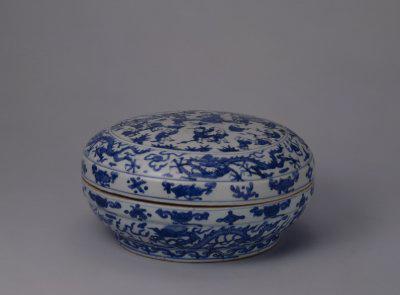 萬歷早期仍然使用回青青料,發(fā)色濃重艷麗,藍(lán)中泛紫。萬歷二十四年(1596年),回青料用竭,開始使用浙江產(chǎn)的浙料,由于這個時期對青花鈷土礦料有了新的工藝,從傳統(tǒng)的水選到火煅,迅速提高了青花的發(fā)色質(zhì)量,使得浙料呈色青翠幽藍(lán),藍(lán)中泛灰,多有暈散,色調(diào)頗具沉靜感。造型