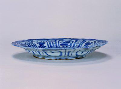 盤類有八方形、梅花形、蓮瓣形、葵花瓣形和出口外銷大盤(胎體較薄,寬板沿口,器身有蓮花瓣形開光,內(nèi)繪花卉、雜寶等,這種外銷大盤一直延續(xù)制作到清初)。