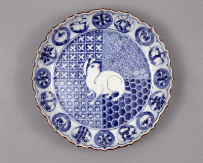 故宮藏明天啟仿成化款青花兔紋花口盤