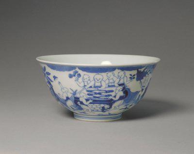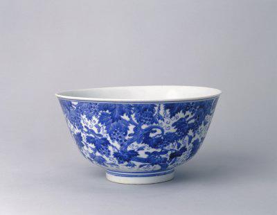 光緒民窯青花紋飾題材有花鳥(niǎo)、云龍、云鳳、鳳穿花、鳳凰牡丹、山水人物、博古、荷蓮、百鹿、羲之愛(ài)鵝、陶淵明愛(ài)菊等。此外還不少寓有吉祥福壽之意的內(nèi)容,如麒麟送子、富貴白頭、連生貴子、多子多福、“福祿壽”三星等,這些紋飾盡管俗氣,但反映了當(dāng)時(shí)的一種社會(huì)現(xiàn)象。紋飾多布局松散,層次不清,畫(huà)工草率。