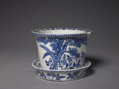 故宮藏清光緒體和殿制款青花花卉紋花盆盆托