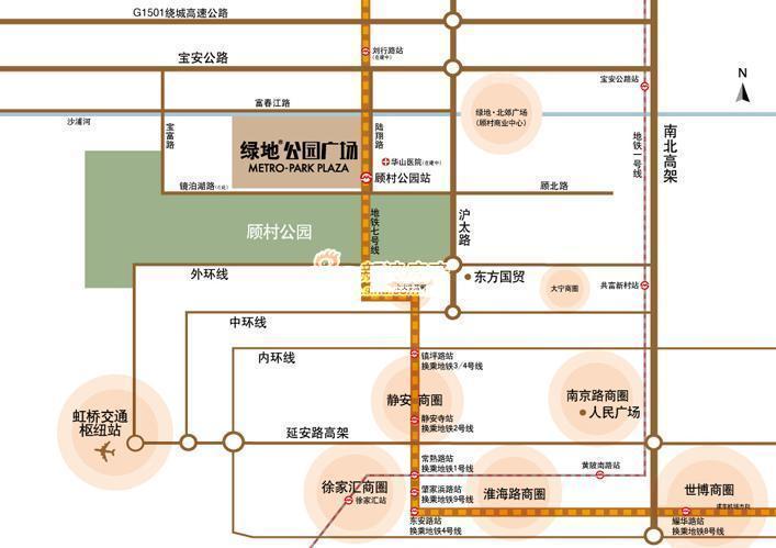 綠地公園廣場(chǎng)位于寶山區(qū)陸翔路111號(hào)。地處顧村板塊核心,北至規(guī)劃河道,南至顧村公園,東臨華山醫(yī)院北院,西臨大型居住區(qū)。 周邊環(huán)伺立體化交通網(wǎng)絡(luò),800米內(nèi)快捷鏈接滬太路、環(huán)城立交,駕車約40分鐘抵達(dá)市中心。7號(hào)線地鐵口就在社區(qū)內(nèi),33分鐘抵達(dá)靜安寺。