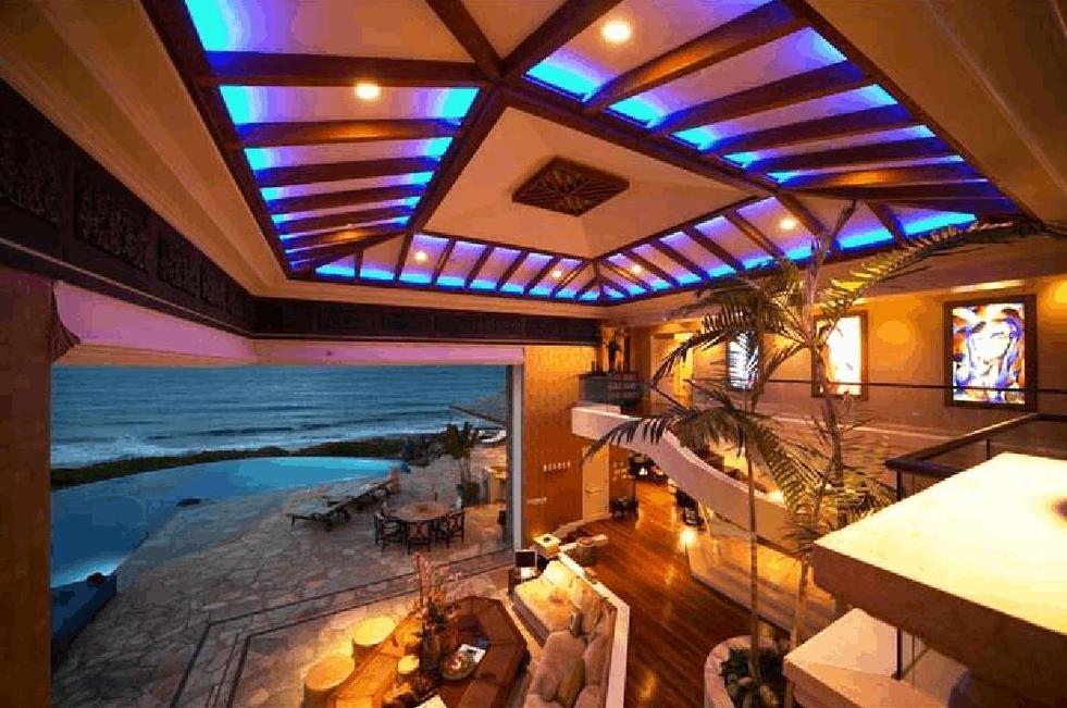大?。?30平方英尺這個富有鄉(xiāng)村風(fēng)味的木屋屋頂下是一條可容一條小飛艇通過的出水口,旁邊是一個水力按摩池。誰在池子里?自己看旁邊的小圖吧。