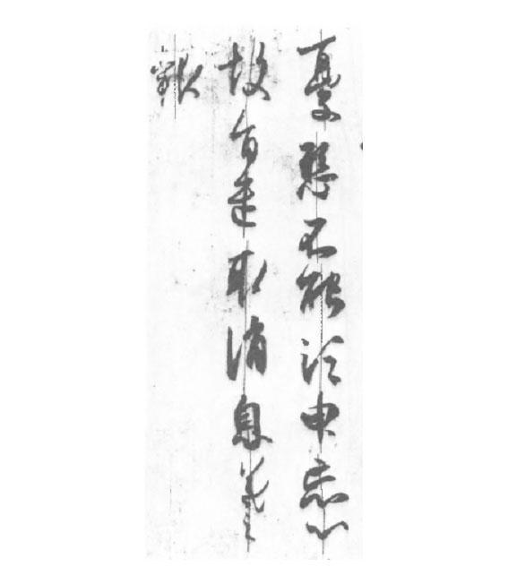 行軸線的呼應(yīng),是王羲之作品極重要的一個特點。《憂懸帖》一、二行之間,都表現(xiàn)出配合:后面一行軸線的波型與前一行軸線的波型相似,但細節(jié)又不相同,造成了章法構(gòu)成上動人的效果。