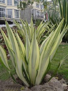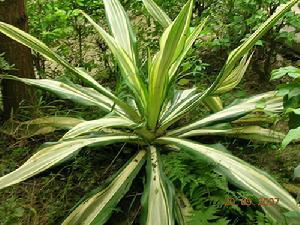 萬年麻(Furcraea foetida)是萬年蘭屬(Furcraea)植物,株高可達(dá)1m,莖不明顯。葉呈放射狀生長(zhǎng),劍形,葉緣有刺,波狀彎曲。斑葉品種無刺或有零星刺,葉面有乳黃色和淡綠色縱紋,色澤潔凈優(yōu)雅,調(diào)和美麗 常綠灌木狀,成株半圓珠筆球形,葉呈放射狀,先端有硬刺。高度×冠幅為1~2cm×1~2cm,質(zhì)感較粗,萬年麻葉色呈深綠,葉緣有鋸齒。黃紋萬年麻葉面有乳黃色淡綠色縱紋,葉色優(yōu)雅、美觀。