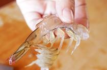 步驟五 | 蝦去殼挑去沙線,寶寶小的可以直接剁碎 |