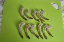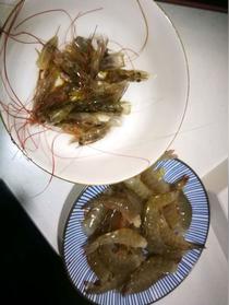 步驟二 | 把蝦去頭,開邊,去腸,洗凈備用;蝦頭不扔。 |