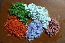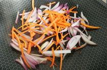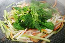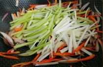 五色菜是一道創(chuàng)意菜,所需用料有胡蘿卜、雞蛋、芹菜、菠菜等。