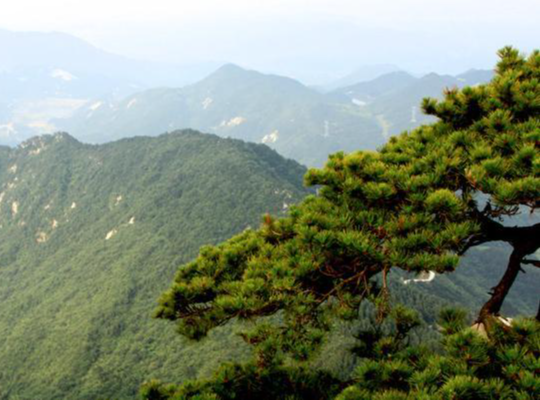 迎客松矗立大尖峰頂,茂枝斜向東南,如一位老人遙伸蒼勁手臂于峭壁之外,似向游客招手致意,勝似畫家筆下迎客松,曾被多家刊物和電視臺(tái)作封面和片頭背景,是旅游攝影留念的最佳景點(diǎn)。