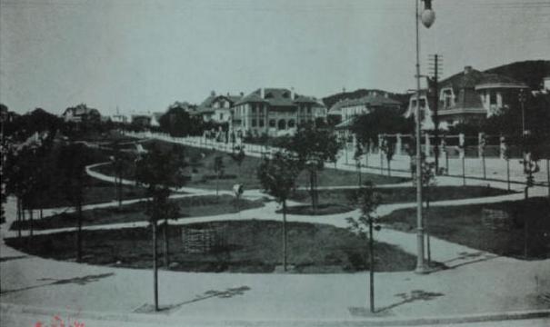 園址原系觀海山通往青島灣的一條自然沖溝,北高南低。北部原是百十戶人家的村莊,村名為“大村”。德國(guó)侵占青島時(shí)期始建綠地,稱(chēng)“梯利華茲街心花園”,是青島早期公園之一占地面積約8000平方米。日本第一次侵占時(shí)期,改稱(chēng)“大村公園”。北洋政府統(tǒng)治時(shí)期,改稱(chēng)“第六公園”。因遍植薔薇,花開(kāi)繁茂,老百姓稱(chēng)“大花溝”。20世紀(jì)30~40年代,填溝平地變?yōu)槔鴪?chǎng),至1945年前與路面齊平,種植懸鈴木、銀杏、青樸及花灌木,簡(jiǎn)易恢復(fù)成公園。建國(guó)前荒蕪。建國(guó)后,調(diào)整個(gè)別植物品種,種植雪松及櫻花、紫薇等花木樹(shù)。建大型月季花壇,周邊種植大葉黃楊籬。更新兒童活動(dòng)區(qū)的秋千、滑梯、沙坑等,稱(chēng)安徽路游園。