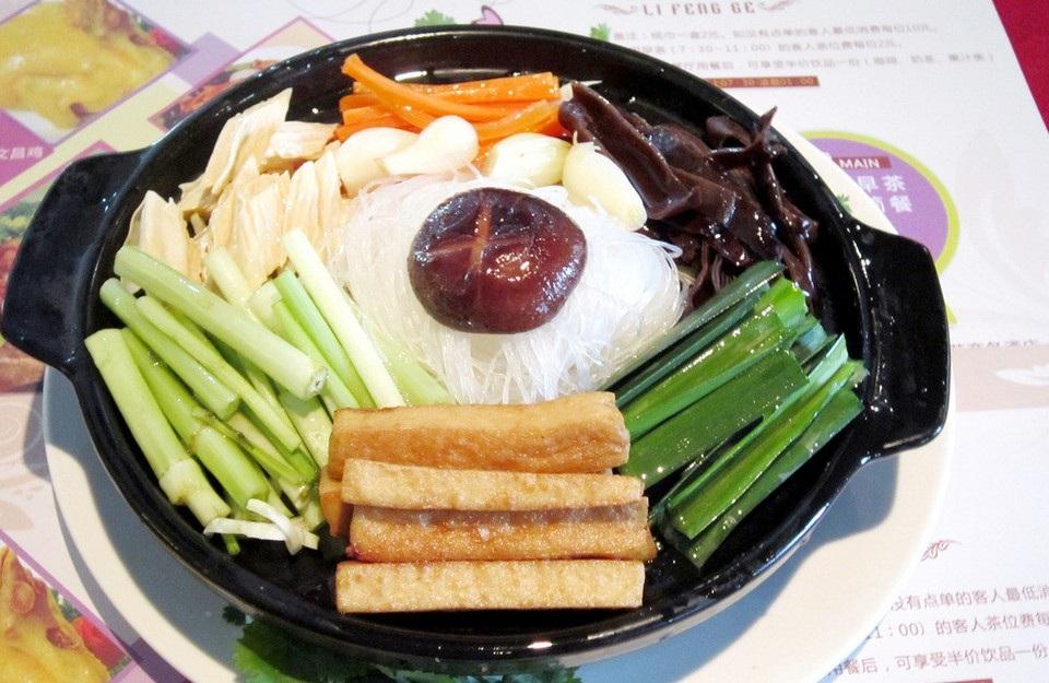 海南齋菜煲是一種海南省的傳統(tǒng)名肴,屬于素菜。齋菜,原為道家、佛家烹任的以三菇六耳、瓜果蔬茹及豆制品為主的素食菜肴,故又稱“寺院菜”、“素菜”。 海南齋菜主要出自瓊北的??诤铜偵降貐^(qū)民間。除宗教活動需要外,傳統(tǒng)的習(xí)俗為每逢農(nóng)歷大年初一,家家戶戶必吃“齋”。其次為元月初九,也普遍“拜神”吃齋。齋菜的最大特點(diǎn)是不使用動物性原料。就連某些植物性原料,如大蒜、坡芹、咸菜等也在禁用之列,近年來,由于素菜具有的養(yǎng)生功效和獨(dú)特口味,進(jìn)入飲食市場,大受消費(fèi)者歡迎。其配制方法以??诿耖g傳統(tǒng)制法為基礎(chǔ),略作改進(jìn),故稱之為“海南齋菜煲”。