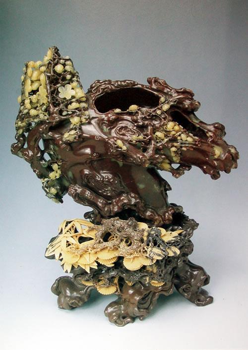 此外,古往今來的石雕藝匠還創(chuàng)作了一些圓、浮、沉各種手法兼具的雕件。這類雕件都表現(xiàn)出較復(fù)雜的內(nèi)容,因此采取浮中有沉、沉中有浮、圓中有沉浮的綜合手法。