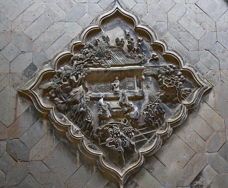 2、平面石雕。包括浮雕、鏡框、畫框、透雕窗格、刻字牌匾、石刻畫、影雕和線雕等。