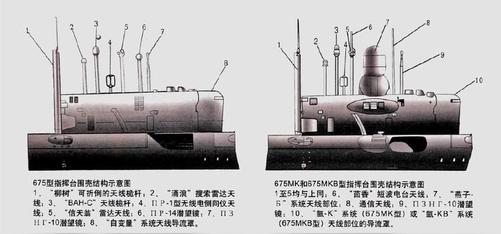 675原型、675MK型和675MKB型指揮臺圍殼對比