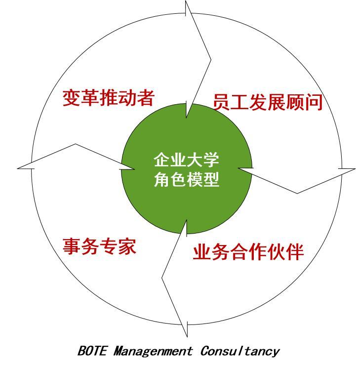 :組織每一次培訓活動,為員工建設培訓檔并記錄、更新等管理工作。伯特認為,每種角色都有典型特征,一般來講,成熟的企業(yè)大學根據(jù)戰(zhàn)略和業(yè)務需求的不同要求,選擇變革推動者、員工發(fā)展顧問和業(yè)務合作伙伴這三種角色作為著重強化和發(fā)展方向,并且?guī)缀趺克晒Φ钠髽I(yè)大學都具備其中一種或幾種角色功能。