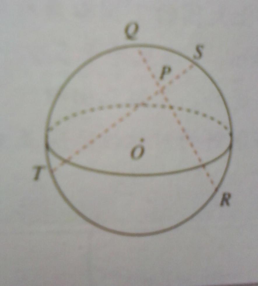 設(shè)點(diǎn)P是球面內(nèi)一點(diǎn),過(guò)點(diǎn)P作兩條直線,分別與球面相交于Q、R、S、T四點(diǎn),則