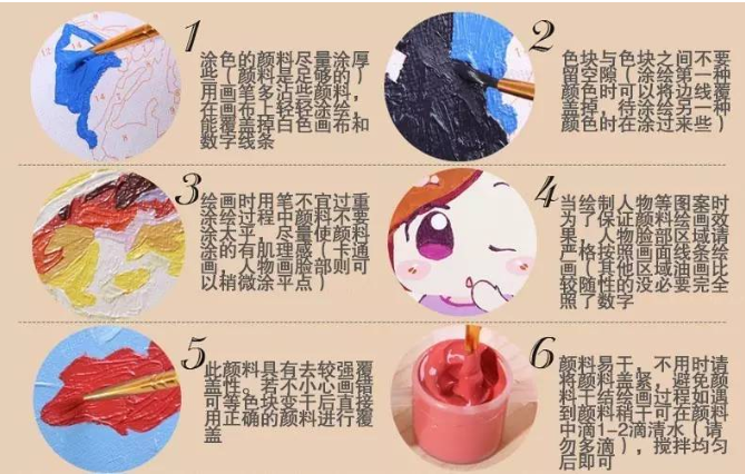 打開(kāi)包裝,取出彩繪產(chǎn)品和標(biāo)有數(shù)字的顏料,將顏料上的數(shù)字與彩繪產(chǎn)品上的數(shù)字一一對(duì)應(yīng)進(jìn)行添涂。
