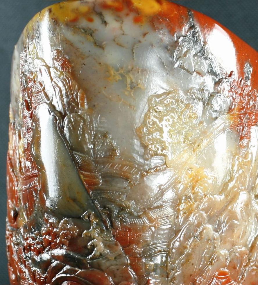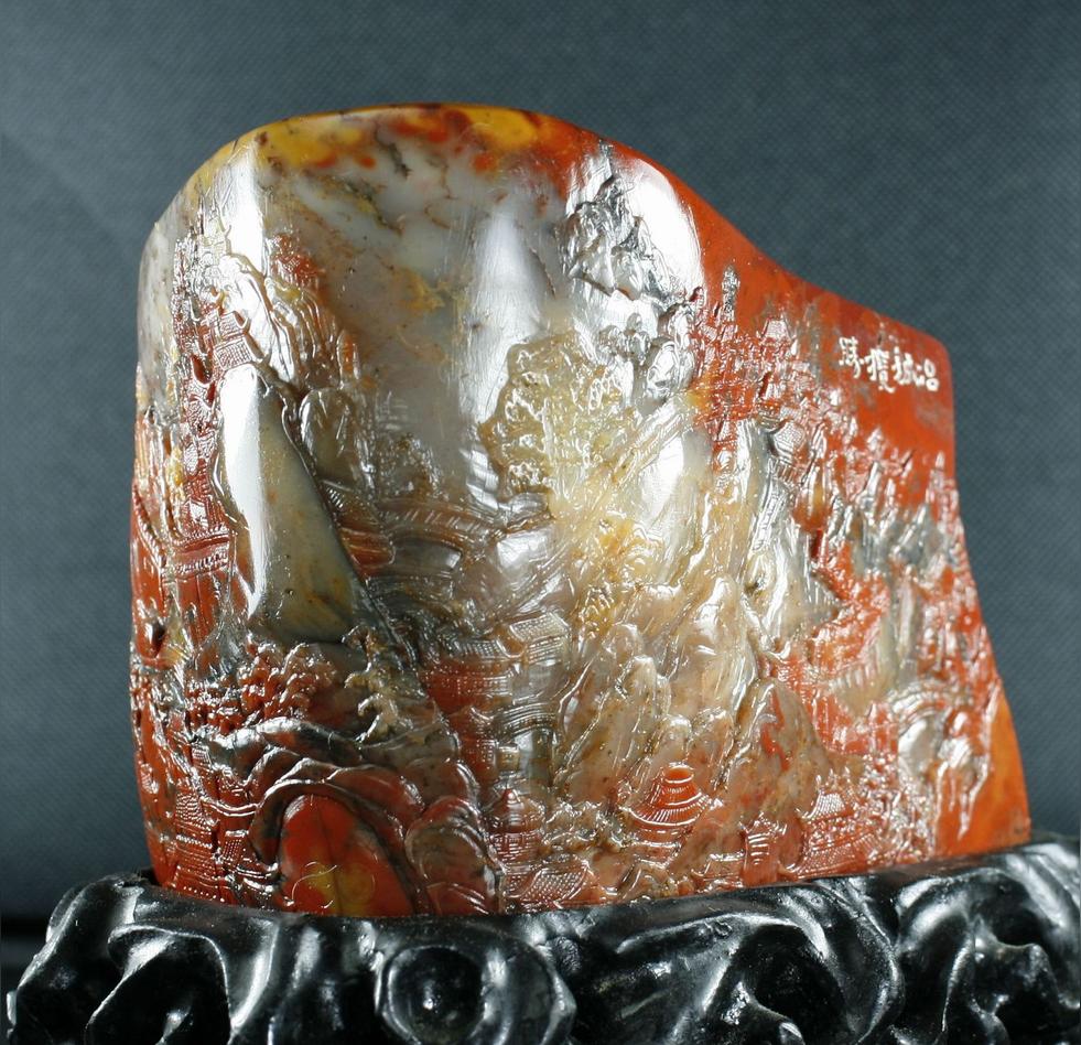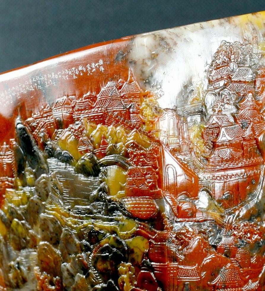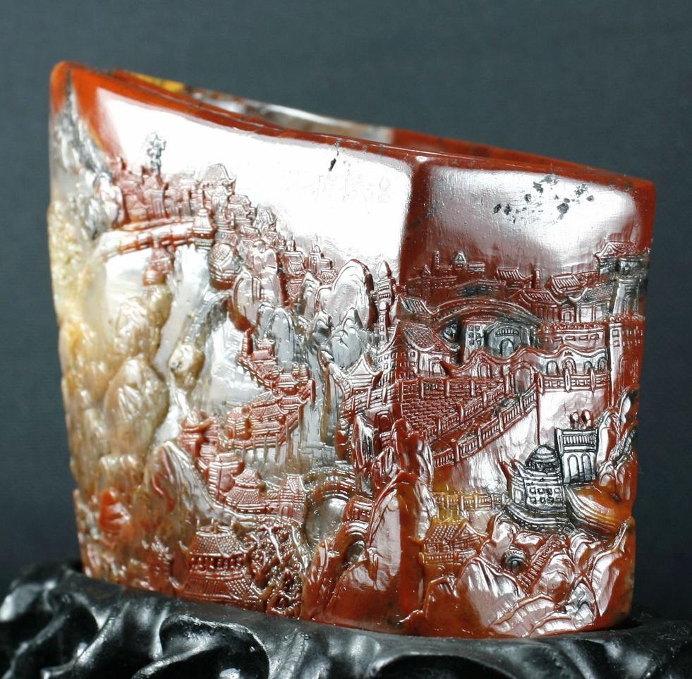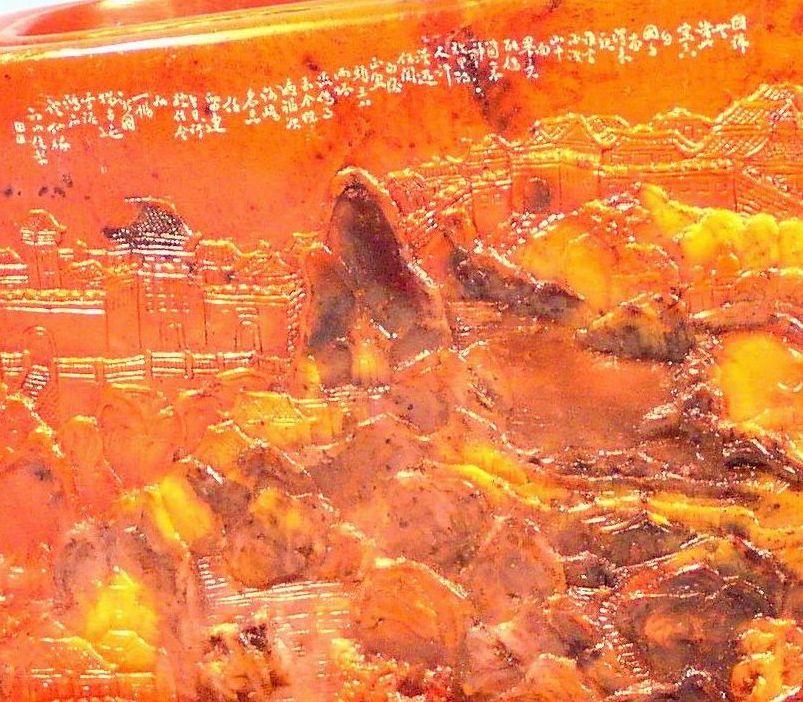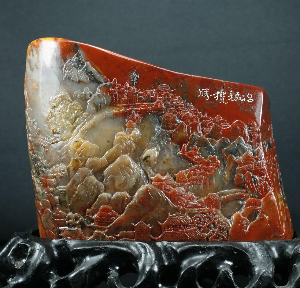 “冶城”在福州屏山一帶。閩越立國之后,無諸建造了福州歷史是最早的城池—冶城。微畫雕《冶城攬勝》用散點透視構(gòu)圖法把這座近二千年前建造的古城歷史畫面展現(xiàn)在我們面前。而今這座古城巳發(fā)生了翻天覆地的變化,但"三山二塔一條江"依然是這座古城獨有的標(biāo)志和風(fēng)貌。作品著重刻畫了冶城的形勝。