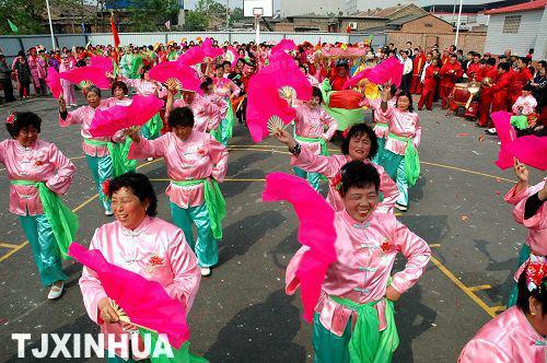 天津雙港鎮(zhèn),村村建有文化廣場(chǎng), 2009年04月30日,雙港鎮(zhèn)在剛剛落成的李樓村文化廣場(chǎng)舉辦全鎮(zhèn)秧歌大賽。