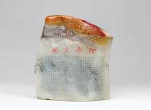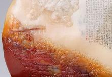 該作品用一塊半透明的壽山坑頭凍石來雕刻,該石大部為 白色,微透明,刻意留著空白,并由懷禪先生微刻上杜牧阿房宮賦原文;而可貴的是其上部呈桔紅色,間或有些灰色和淺黃色,則雕刻了“占地三百多里,樓閣高聳,遮天蔽日”宮殿。作品以圖像化方式遠(yuǎn)眺這座被宮墻緊緊圍起的阿房宮建筑群,其朦朧的寫意刀法給讀者增添的不盡的暇想…作品基本信息
