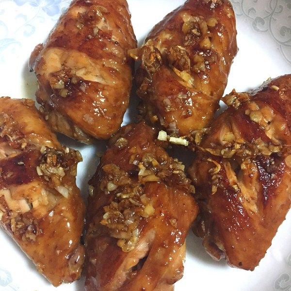 材料:雞中翅6只,生粉30克蒜蓉半湯匙,生抽1湯匙,白糖2小匙,鹽1小匙。