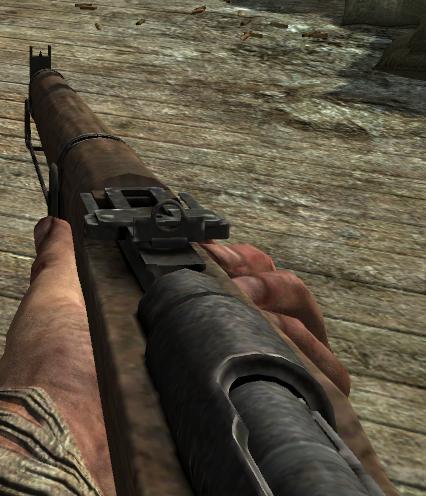 日軍的武器,在每關(guān)進(jìn)行萬(wàn)歲沖鋒時(shí)日軍士兵都會(huì)端著上了刺刀的九九式步槍出現(xiàn)。遺憾的是,該槍在游戲里玩家無(wú)法使用。