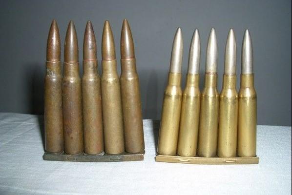 左為T(mén)-99步槍彈,右為38式步槍彈