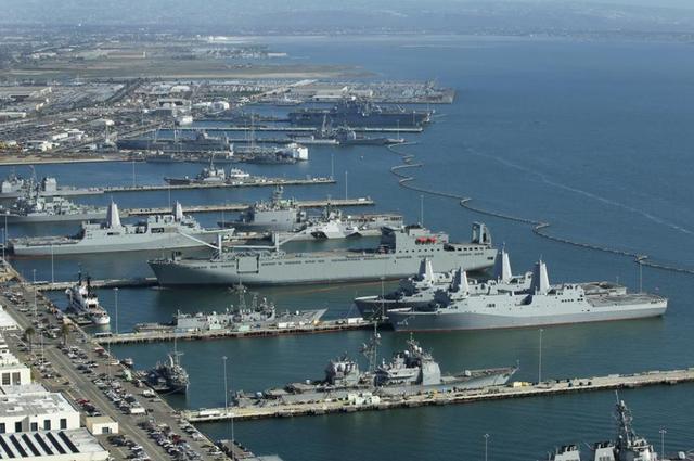 美國海軍以圣迭戈地區(qū)為母港的艦船共有九十八艘,四艘核潛艇