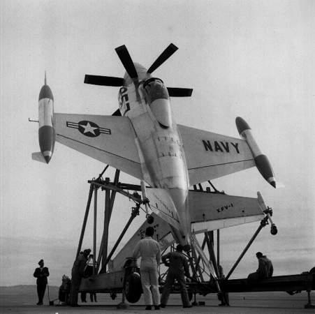 洛克希德·馬丁XFY-1(Lockheed XFV-1)和康維爾XFV-1(Convair XFY-1 Pogo)屬于50年代應(yīng)美國海軍的要求研制的。海軍想尋求一種能在軍艦的小甲板上垂直起降的戰(zhàn)斗機(jī)以保護(hù)艦隊(duì)。這些飛機(jī)的共同點(diǎn)就是有十字形的尾翼,尾翼尖端有機(jī)輪,可以使飛機(jī)“站立”起飛以便利用狹小的軍艦甲板。