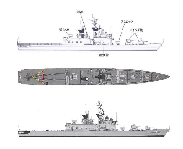 70年代,日本海自獲得了兩艘榛名級直升機驅逐艦,使其海軍的立體反潛能力有了飛躍的成長。在1970年,日本防衛(wèi)省長官中曾根康弘(后來出任首相)提出了“航路帶”的構想,從日本本土南端到北緯20度的釣魚島、沖之鳥島、南鳥島的海域范圍內,畫出東、西兩條海上航路,這就是日后日本“防衛(wèi)海上生命線”構想的起源。為了守護這個面積廣達78萬平方公里的“航路帶”,日本防衛(wèi)省遂在第四期防衛(wèi)力整建計劃(1972~1976年)提出了領導直升機驅逐艦(Leader Destoryer Helicopter Carrier,DLH)的方案,建造兩艘排水量8700噸、可搭載六架直升機(其中四架處于備便狀態(tài))的艦艇,并配備韃靼人防空導彈、燃氣渦輪機等先進裝備,可作為艦隊反潛于防空中樞,與意大利的維特里歐·文內托號(MM Vittorio Veneto)類似。[1]