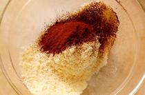 把材料A中的杏仁粉、可可粉和糖粉過篩混合均勻。