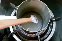 材料C中的清水和細(xì)砂糖倒入小鍋中小火加熱至116度(制作時的濕度低于75%,所以糖漿不要超過116度)。