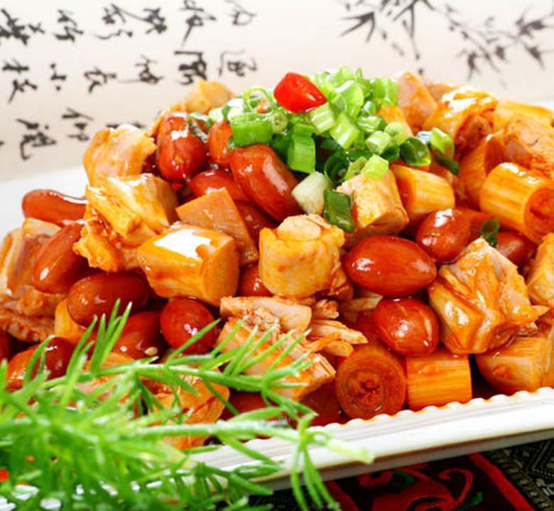 選用上等白水兔,宰成1.5CM見方的兔丁,將適量的豆豉醬、白糖、花椒面、紅辣椒油調(diào)勻,再放入兔丁、蔥白,攪勻,盛盤撒上碎花生仁即成。紅油兔丁以其色鮮油紅,麻辣適中,香嫩可口;回味悠長而成 為居家美食,是宴請(qǐng)賓客的一道上等菜。