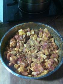 再下來(lái)加開(kāi)水末過(guò)肉肉,鍋里多添些水就開(kāi)始大火蒸了,蒸上一個(gè)多小時(shí)吧,平時(shí)都是媽媽操心看,具體時(shí)間大家自己估摸