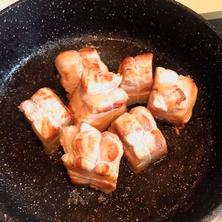 用平底鍋將五花肉難過(guò)煎制金黃色