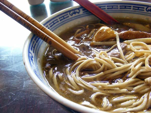 主材:食堿水面條500克,豬筒骨500克,鮮豬肝250克,水發(fā)木耳250克(約耗60克)。