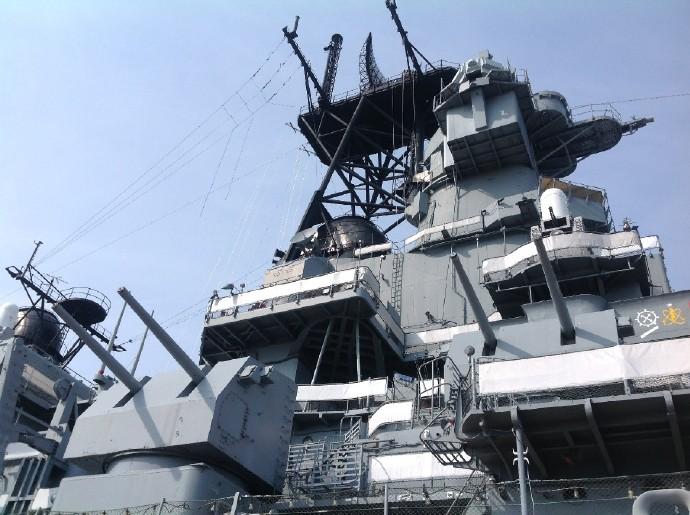 軍艦后主炮的上面可以看到主/副炮射擊指揮雷達(dá)的天線。大概新澤西號(hào)現(xiàn)代化改造的時(shí)候加裝的吧。