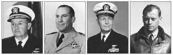 從左至右分別為:第一任艦長休·古德溫上校(Hugh H. Goodwin),第二任艦長瓦爾特·菲韋克上校(Walter V.R. Vieweg),副艦長鮑格林中校,VC-10混成中隊隊長愛德華·赫克斯塔布爾少校(Edward Huxtable)。