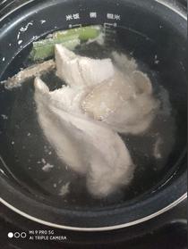 首先我們來煮雞湯,雞湯是非常清淡的,鍋里只放姜和蔥就好了