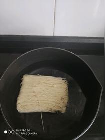 水燒開下面條,關(guān)中火,把面條煮七八成熟