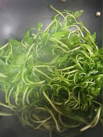 2、油鍋燒熱,放蒜末煸香,倒入馬蘭頭炒。
