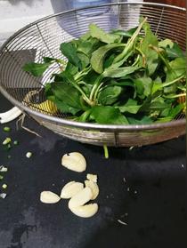 馬蘭頭洗凈備用 大蒜頭洗凈拍一下