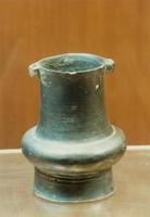 內(nèi) 容:敞口,長(zhǎng)頸,扁腹,喇叭形圈足,足部有雙孔。雙貫耳。器表烏黑發(fā)亮。