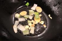 熱鍋放油,爆香蔥姜蒜。