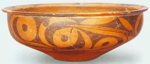 英文名稱: Painted pottery basin with curved body