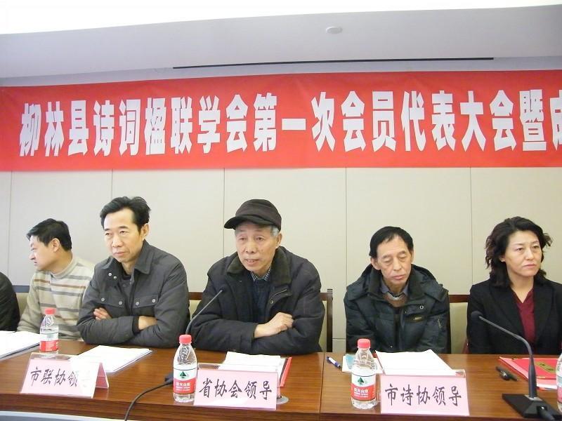2013年1月17日,山西省柳林縣詩詞楹聯(lián)學(xué)會成立大會暨第一次會員代表大會在山西柳林煤炭大酒店隆重召開。近八十余名詩詞楹聯(lián)學(xué)會會員及柳林縣各個涉文部門領(lǐng)導(dǎo)參加了這次會議。山西省楹聯(lián)藝術(shù)家學(xué)會副會長兼秘書長馬長泰、柳林縣委宣傳部部長王琴、柳林縣政協(xié)副主席閆建平、柳林縣人大常委會原主任馬國華、柳林縣政協(xié)原副主席劉文昌、柳林縣書法協(xié)會會長張建國、柳林縣委宣傳部副部長白占全、柳林縣文聯(lián)主席弓福安、柳林縣文學(xué)協(xié)會主席白海峰,以及呂梁市詩詞學(xué)會領(lǐng)導(dǎo)、呂梁市楹聯(lián)學(xué)會領(lǐng)導(dǎo)等出席會議。