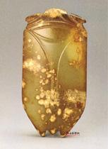 古人對蟬的評價很高,認(rèn)為蟬出之于地底而高聲,幼蟲丑陋成蟲高潔,正好可以代表讓故人得到新生,故在喪葬器中采用雕蟬的形狀來充塞口部。