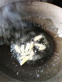冷鍋冷油,放入姜絲。