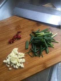 蔥切段,蒜和辣椒切開備用